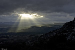 ESCANDIHADO, ESCANDAIADO, EICHANDILHAU: s.f. En Provençal, échappée de soleil, moment où le soleil, apparaissant à travers les nuages, darde ses rayons avec plus d'ardeur que de coutume, coup de soleil.
